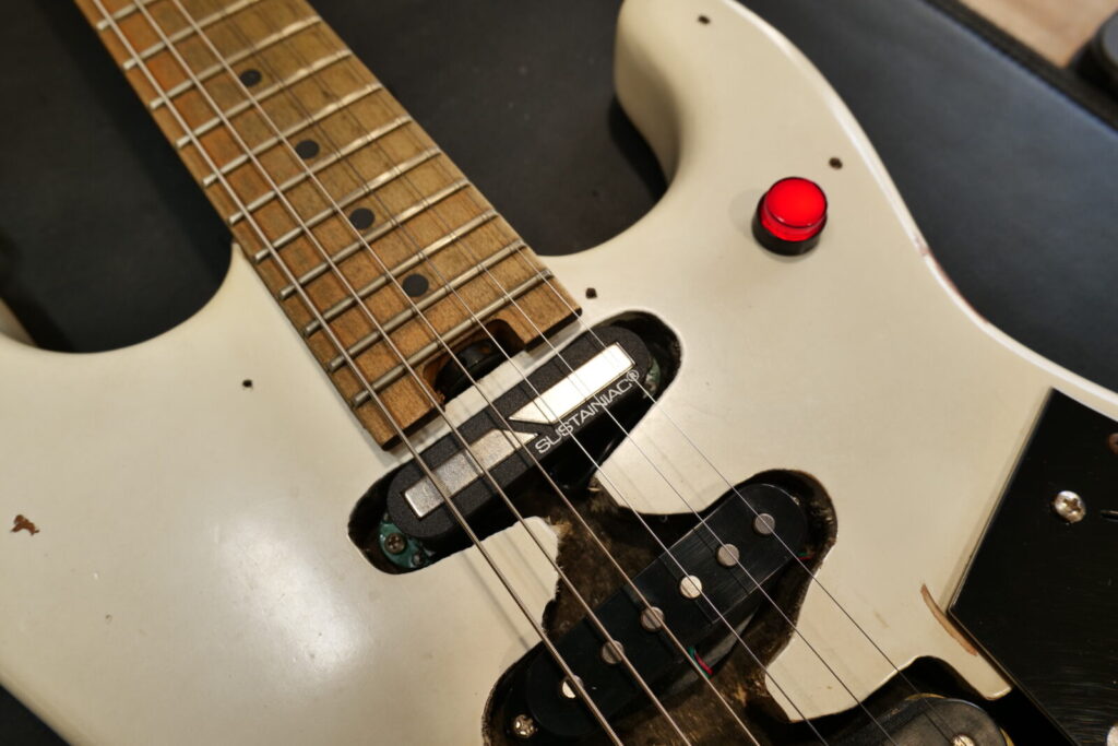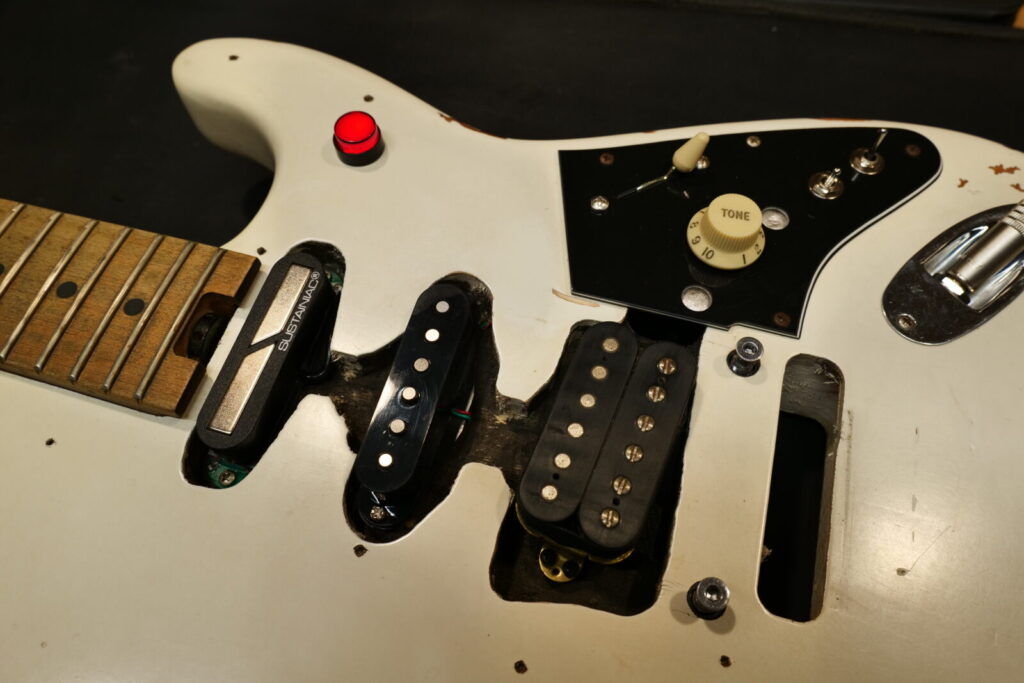 今回はこの「ハム1発・1ボリューム」という潔いロック仕様のギターに、無限のサステインを生む「SUSTAINIAC Stealth Pro Sustainer」を組み込むご依頼をいただきました。