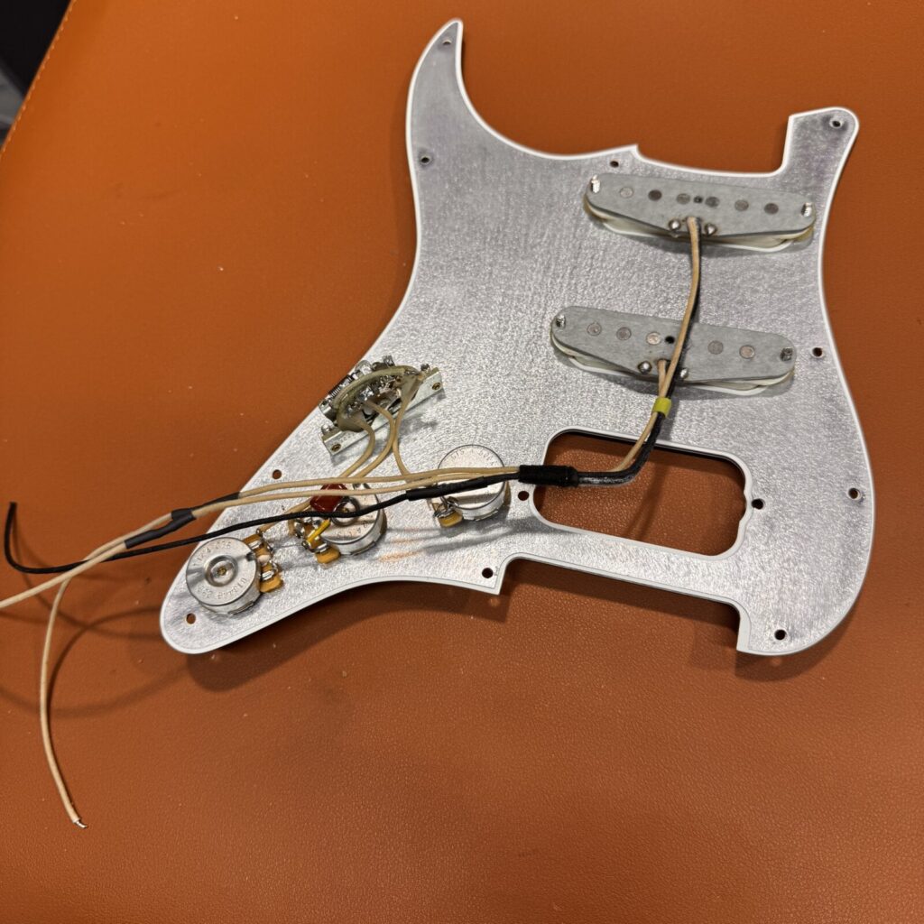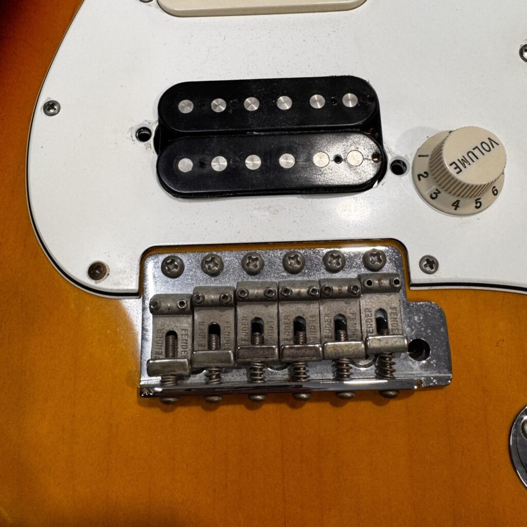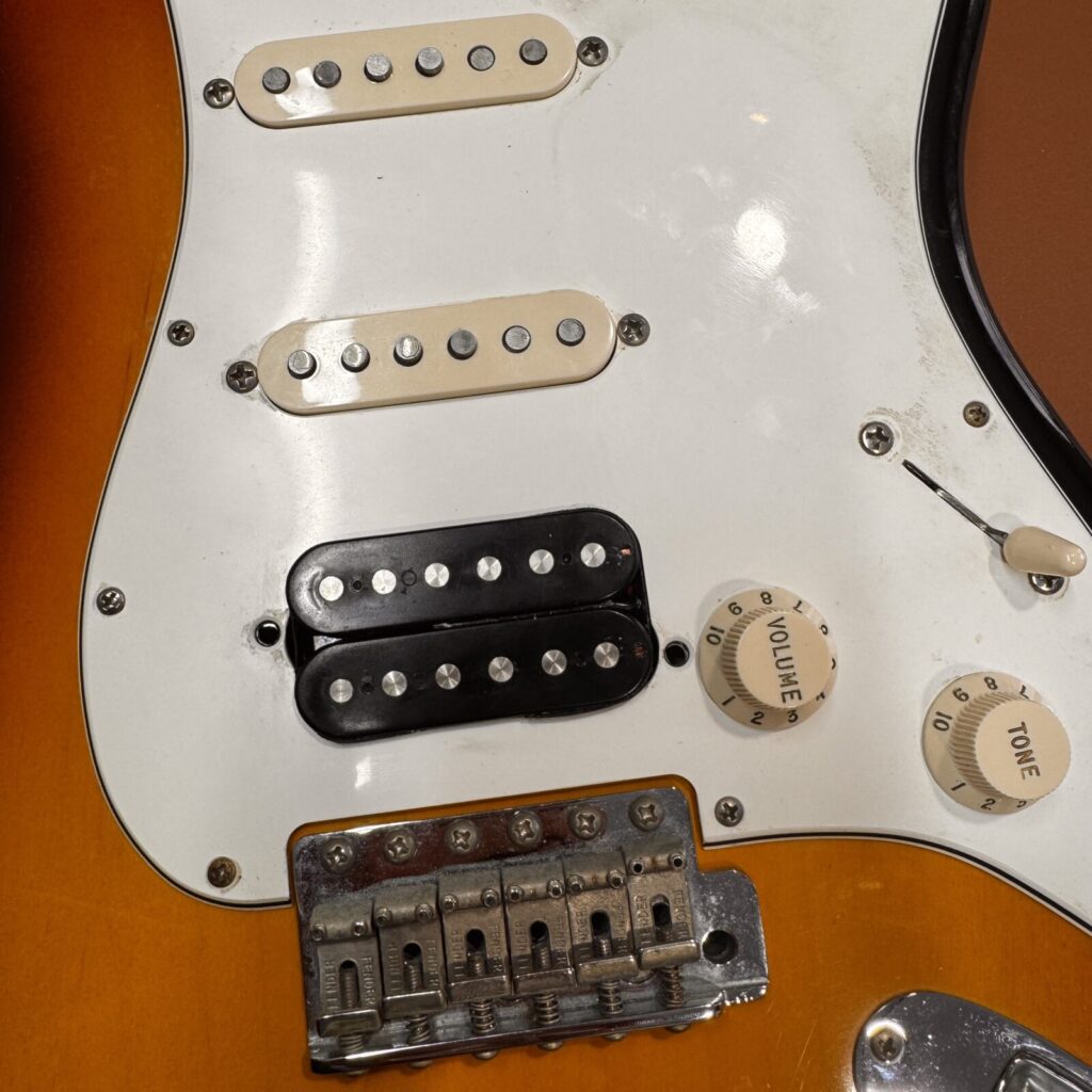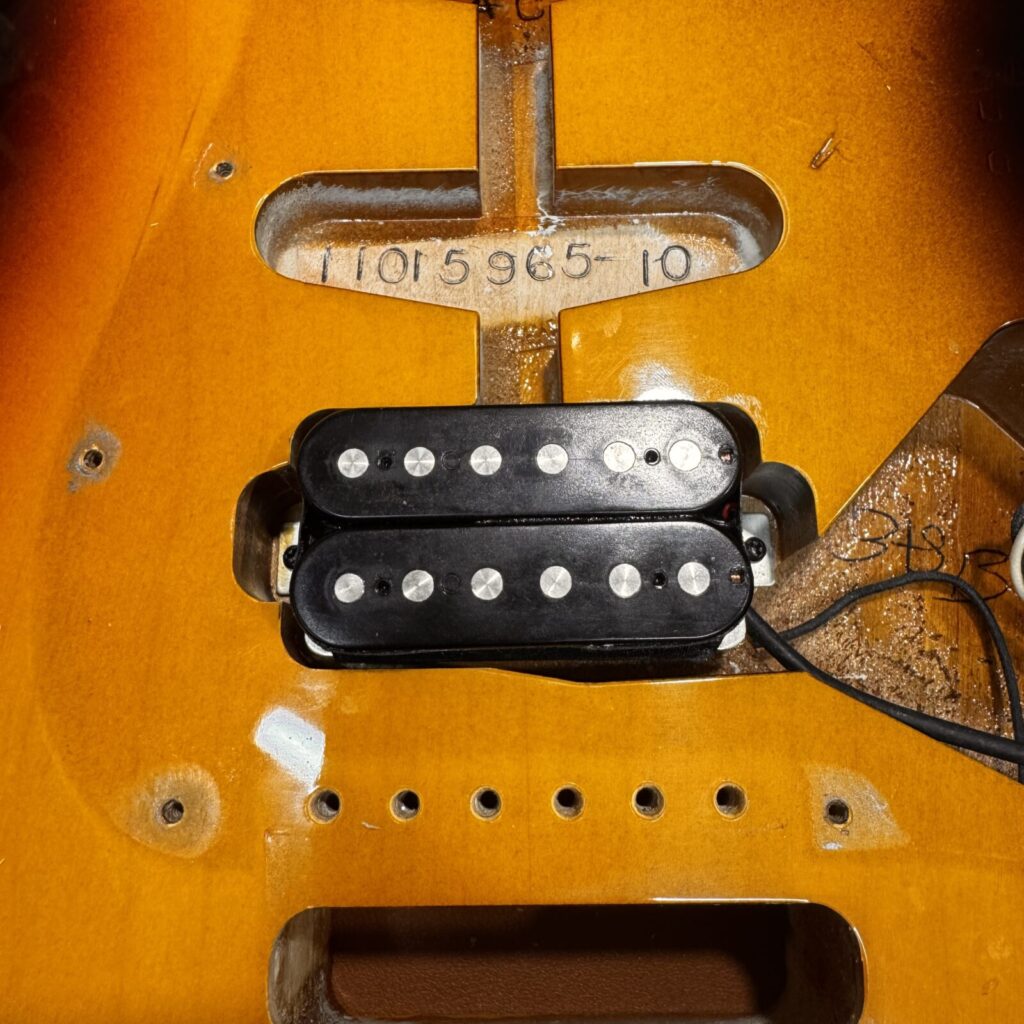 Fender Stratocasterをベースに、Joe Holmesスタイルを意識したカスタム改造のご依頼を2回にわたって承りました。リアハムバッカー化とフロイドローズブリッジへの交換という、プレイヤーのこだわりを反映した内容です。