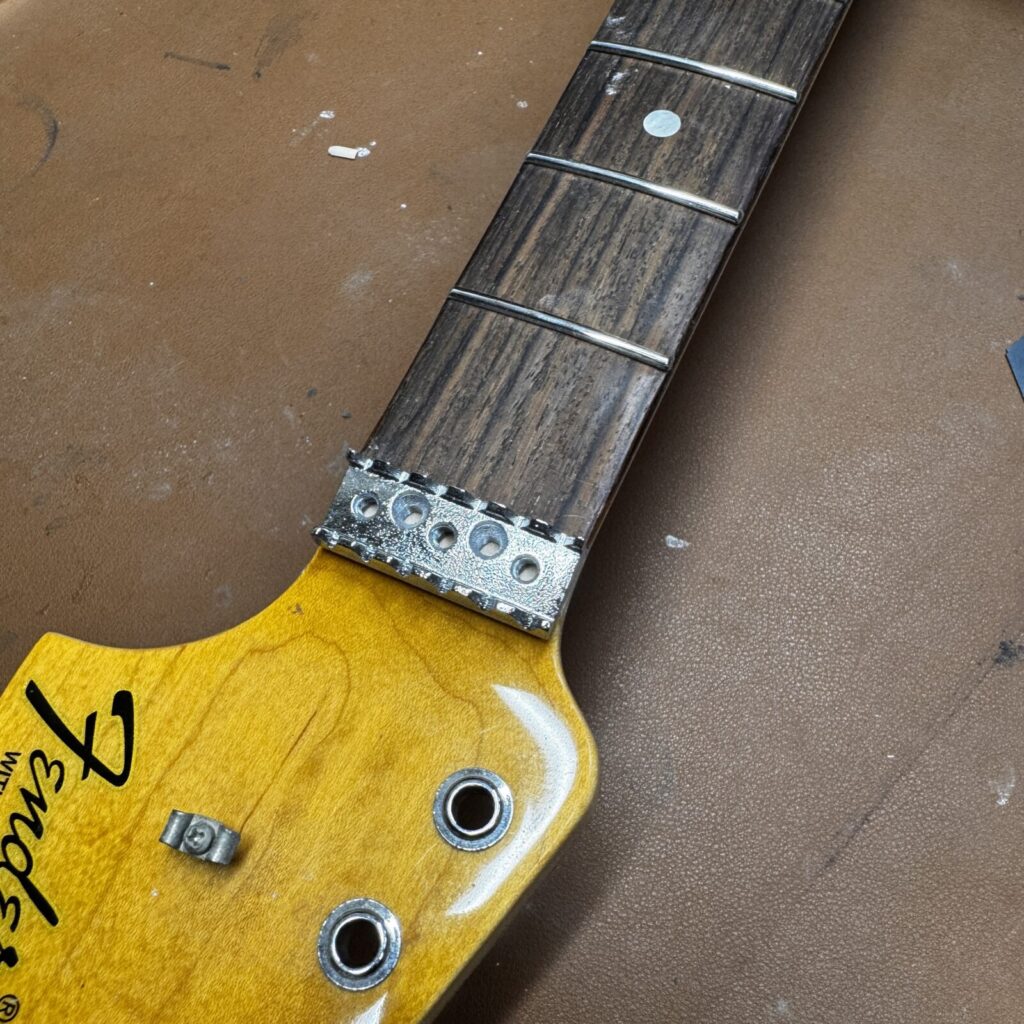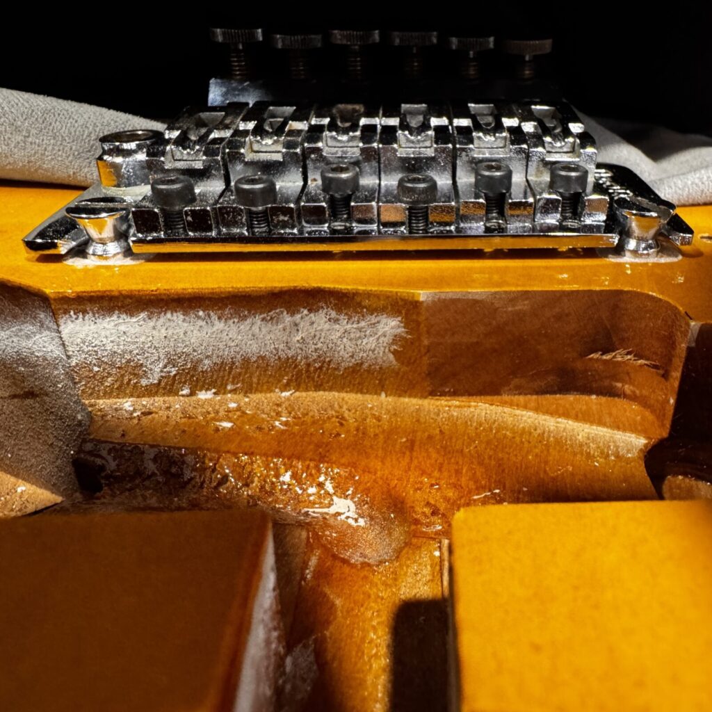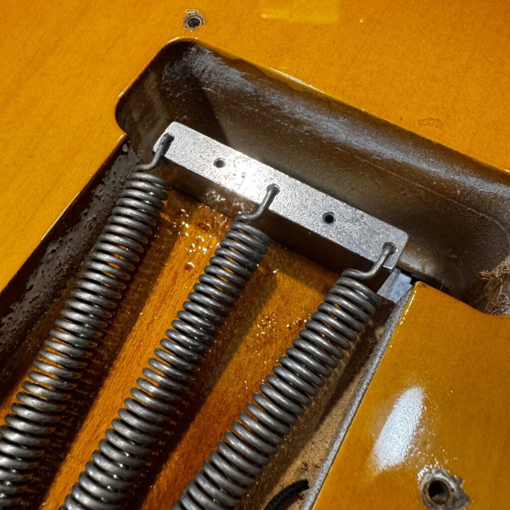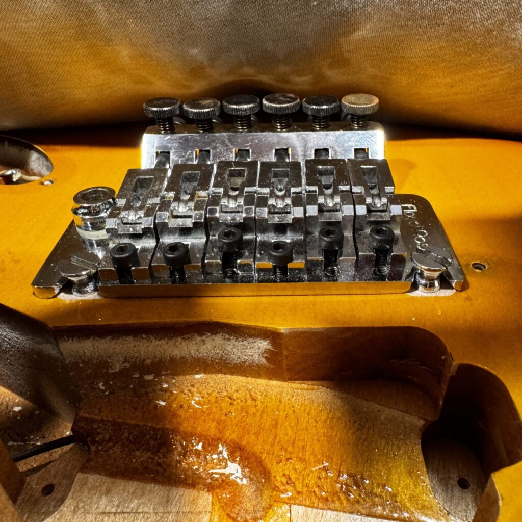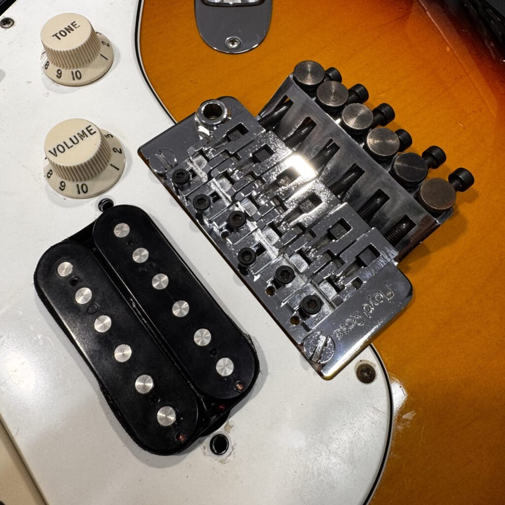 約2ヶ月後、さらなる改造として、シンクロナイズド・トレモロからフロイドローズへの交換をご依頼いただきました。