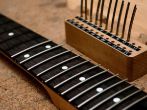 弾き込み凹んだりすり減ったフレット、サイズや素材を変えるための交換。エレキギター、ベース、アコギなど様残な楽器、サークルフレッティングシステムにも対応可能です。