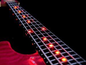 ポジションマークにLEDを後加工で組み込みできます。指板をそのままでLEDの組み込みから指板を交換してより高度な組み込みも可能。