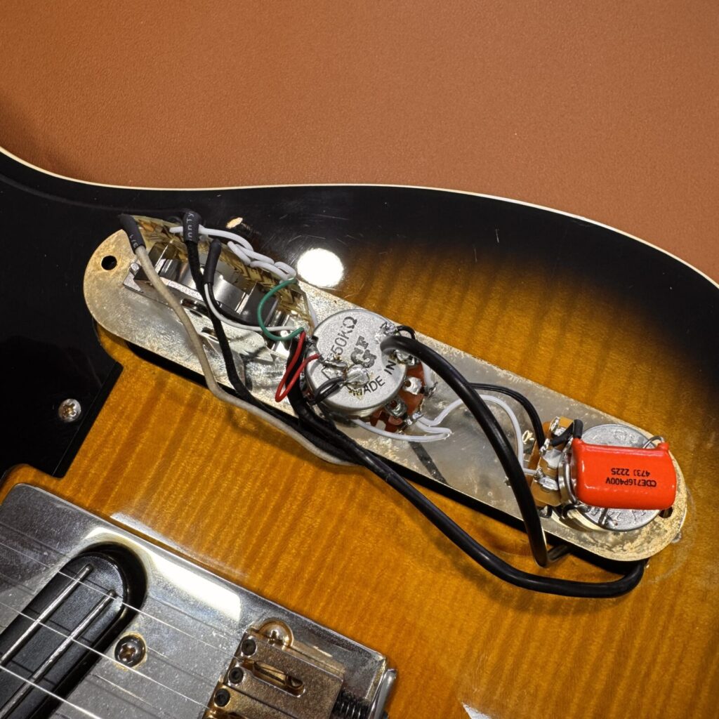 Fender Richie Kotzen Telecasterは、独自の配線仕様を持つ個性派モデルです。今回は、お客様からのご相談をもとに、より柔軟なトーンバリエーションを実現するための配線改造を行いました。